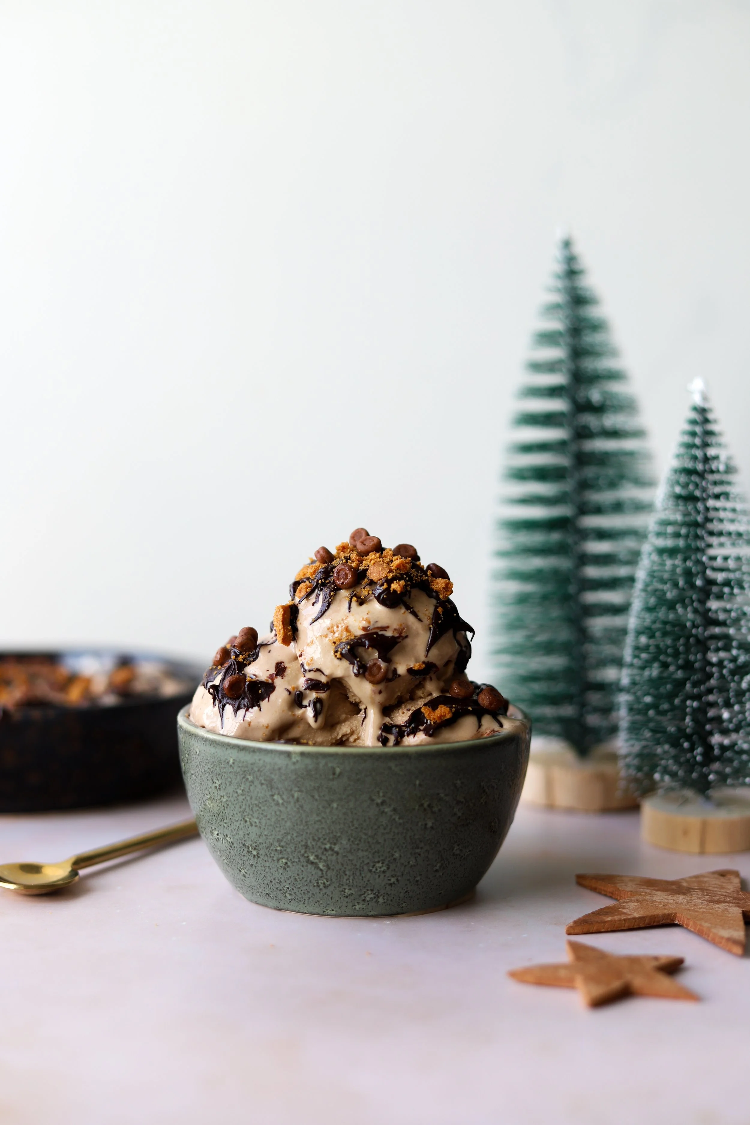 Setjið ísblönduna í fallega skál og dreifið 1/3 af lakkrís sósunni yfir ís-blönduna, dreifið úr sósunni með sleif svo það myndist skemmtilegt mynstur í ísinn. Frystið í a.m.k. 5 klst. eða yfir nótt.