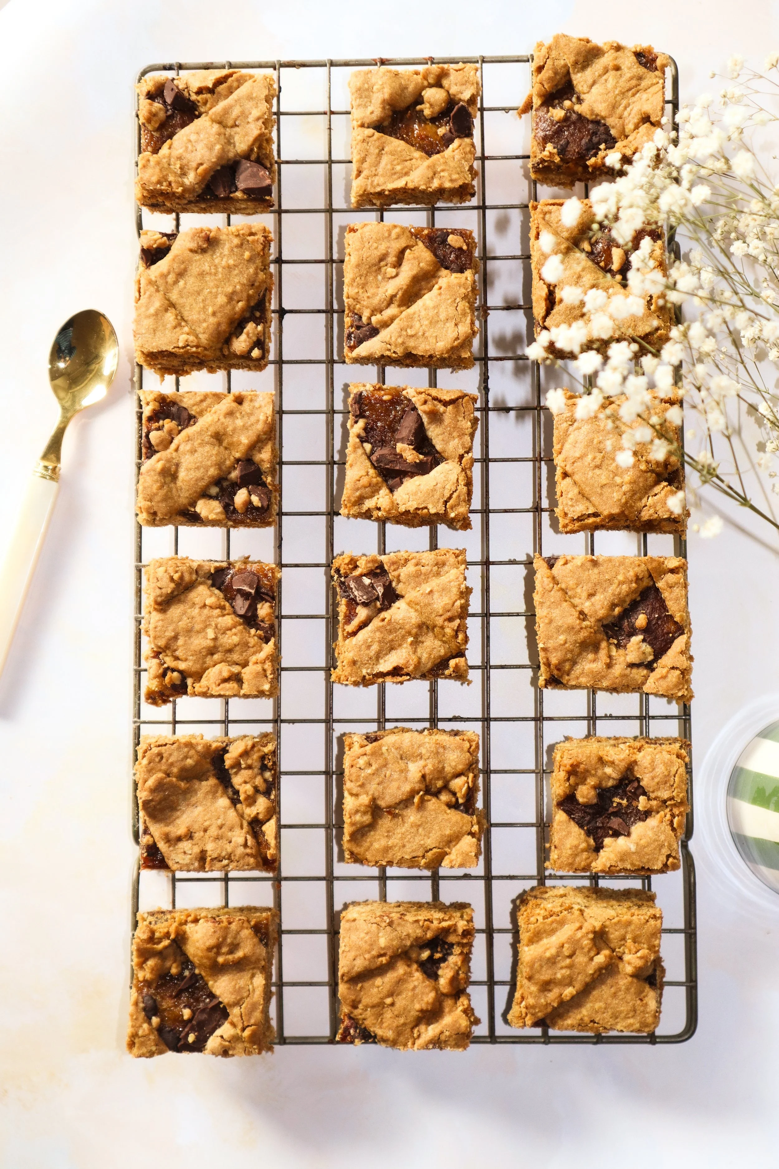 1. Blandið öllu saman nema sultunni og súkkulaðinu, hér er best að nota hrærivél en vel hægt að hnoða saman með höndunum enda mjúkt deig sem auðvelt er að búa til.