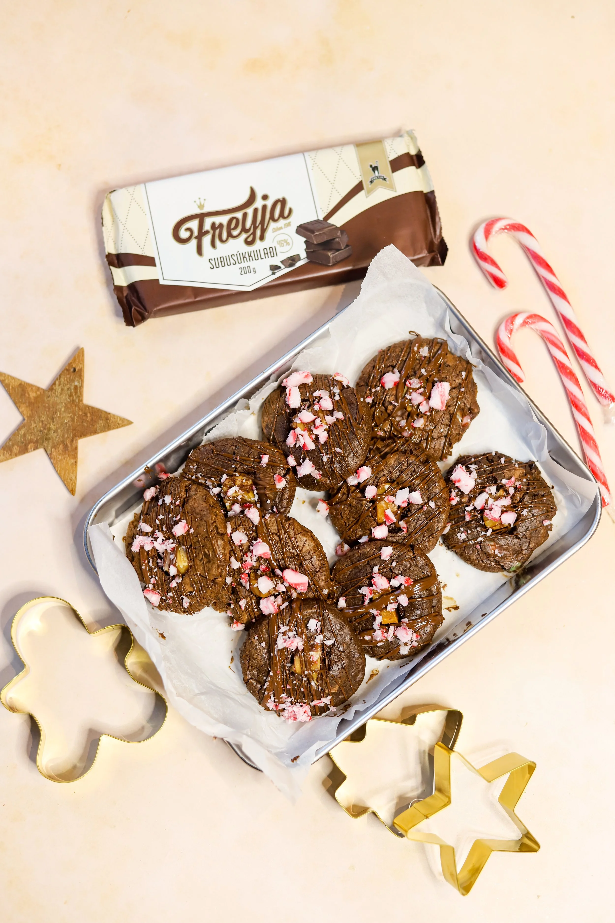 Súkkulaði smákökur með Freyju karamellu og bismarck brjóstsykri