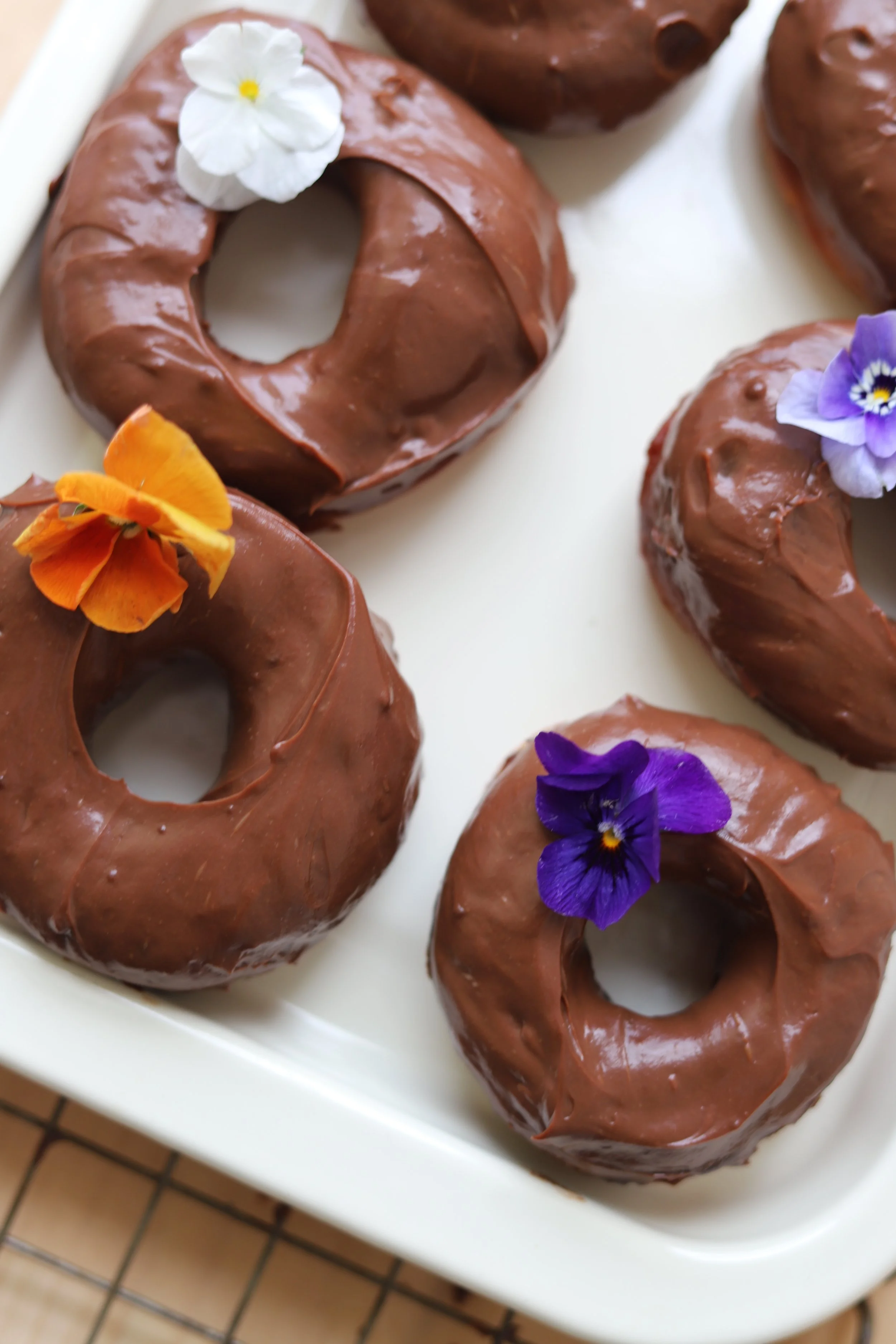 Dýfið þeim næst í súkkulaði ganache og passið að láta súkkulaðið þekja kleinuhringinn vel, það er besti parturinn.