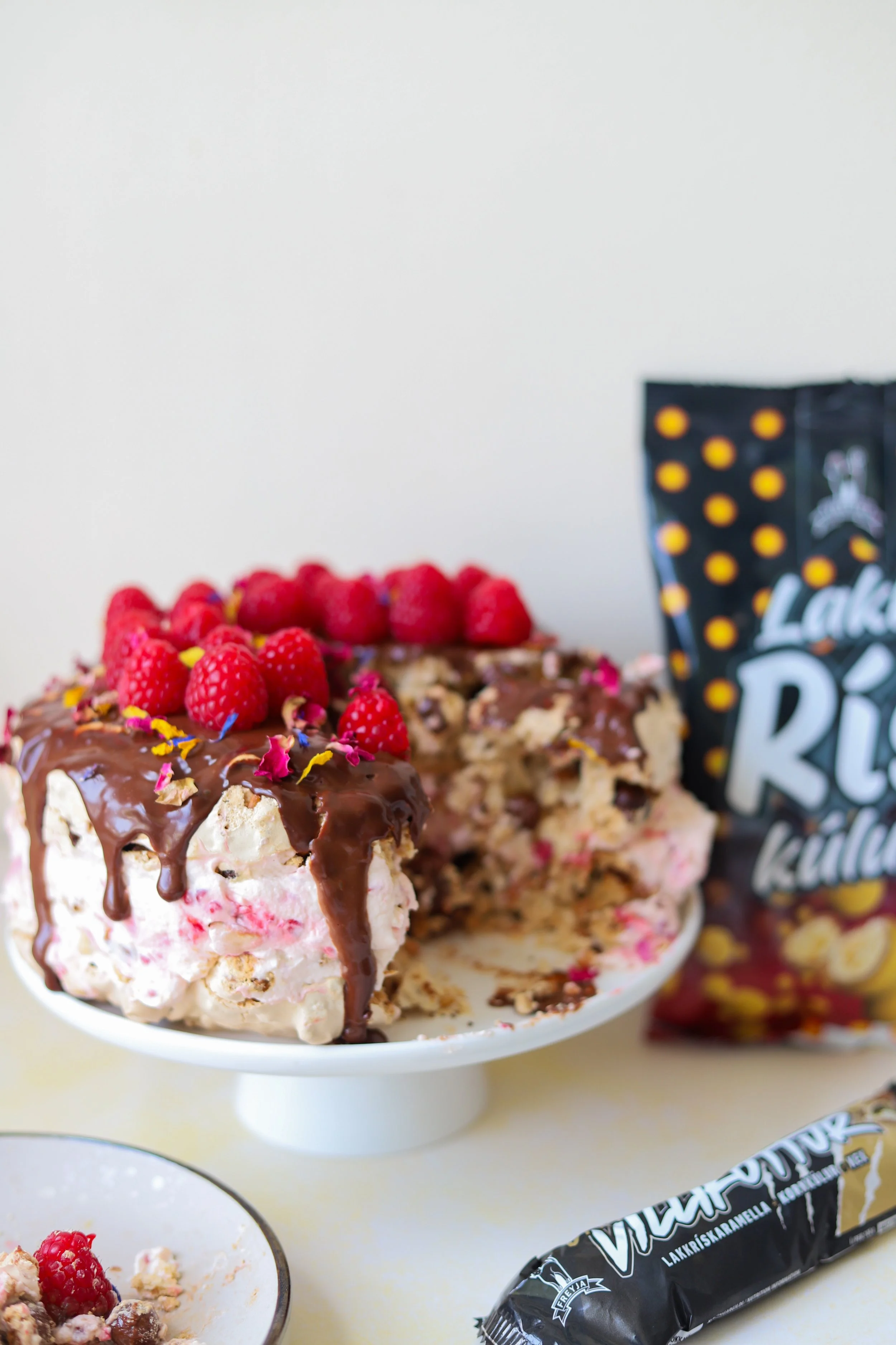 RJÓMAFYLLT MARENGSTERTA MEÐ LAKKRÍS VILLIKETTI OG LAKK RÍSKÚLUM